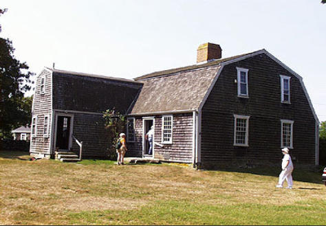 3/4 cape with gambrel roof, now owned by the Tiverton Historical Society, was home to whaling captains and their