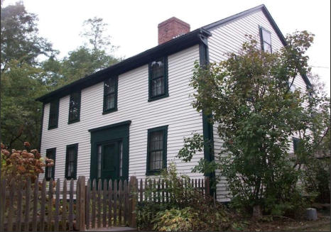 sometime in the late 18th century, it is a two-story five-bay wood-frame structure with a central chimney, and a two-