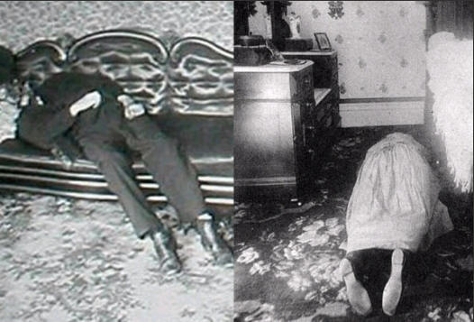 been slaughtered in a similar manner as her husband, receiving 19 blows to the back of her head. Returning to