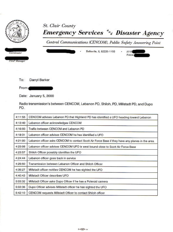 dispatcher from St. Clair County. She told him that a UFO had been reported and that he should
