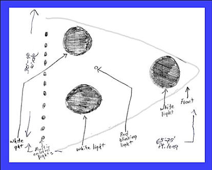 the craft and a blinking red light in the bottom center. He also reported the UFO gave off a beam of